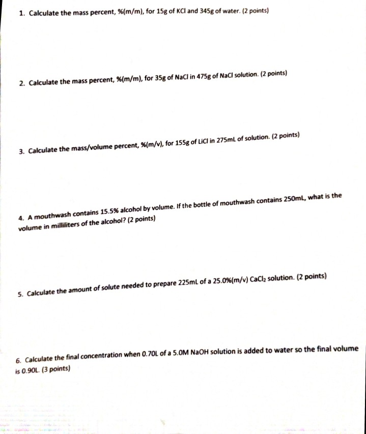 Solved 1 Calculate The Mass Percent M M For 15g Of Kcl Chegg Com