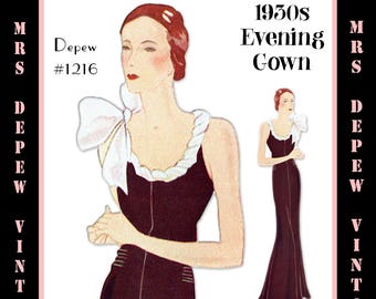 Vintage Sewing Pattern 1930s Evening Gown In Any Size Plus Etsy