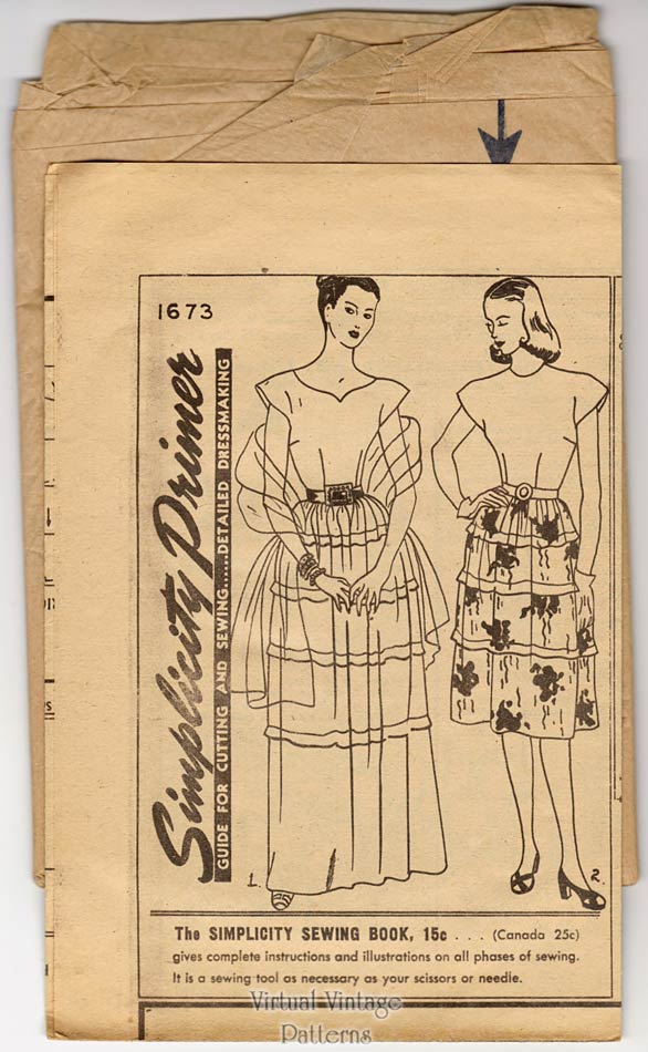 40s Evening Gown Pattern Simplicity 1673 Bell Skirt Cocktail Dress