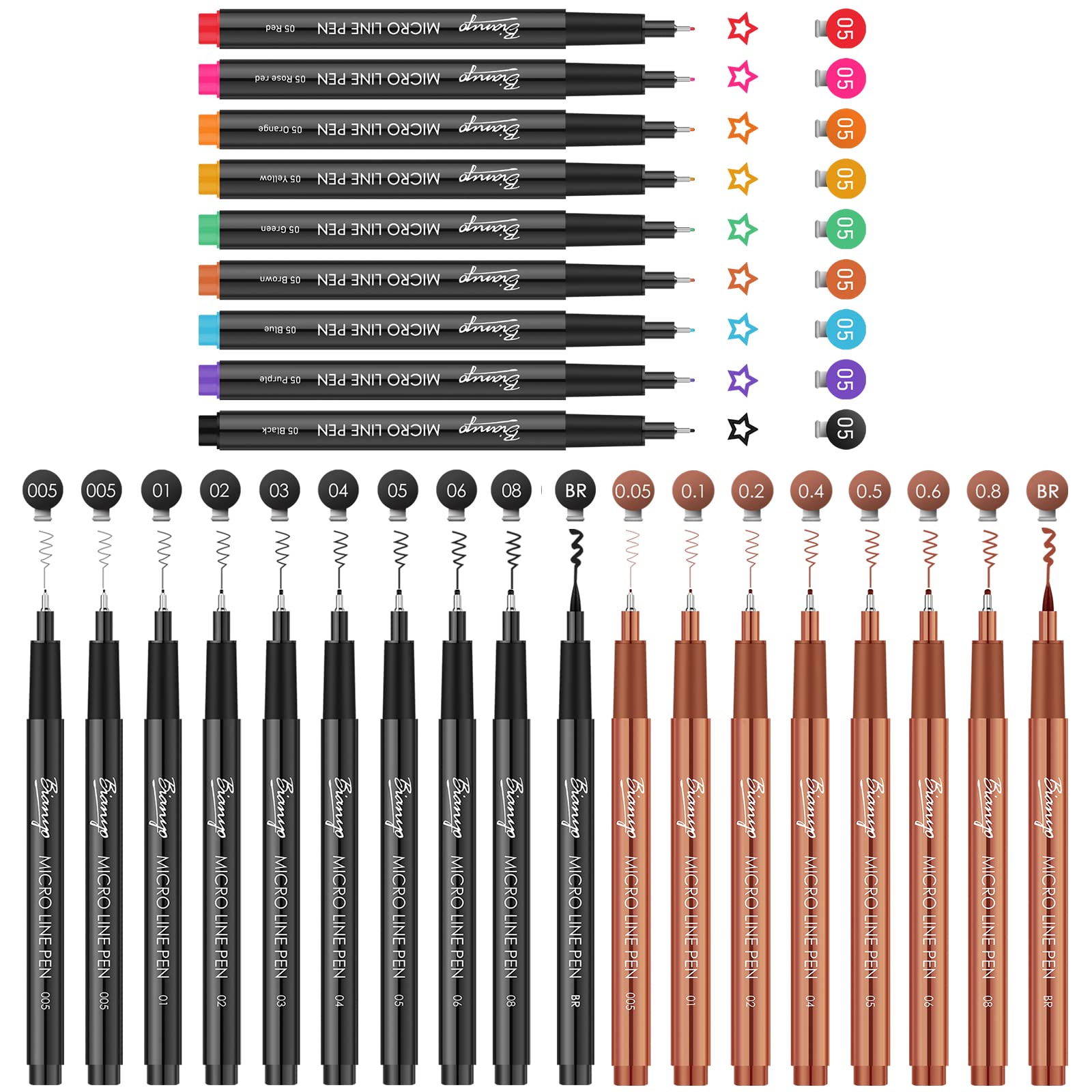Bianyo 27 Pieces Pigment Ink Fineliner Pens Assorted Color And Size 3 Packs Each Pack Of 9 With Zipper Pouch Waterproof Archival Ink Micro Drawing Pens For Drawing Sketching Handwriting Notes Amazon Co Uk